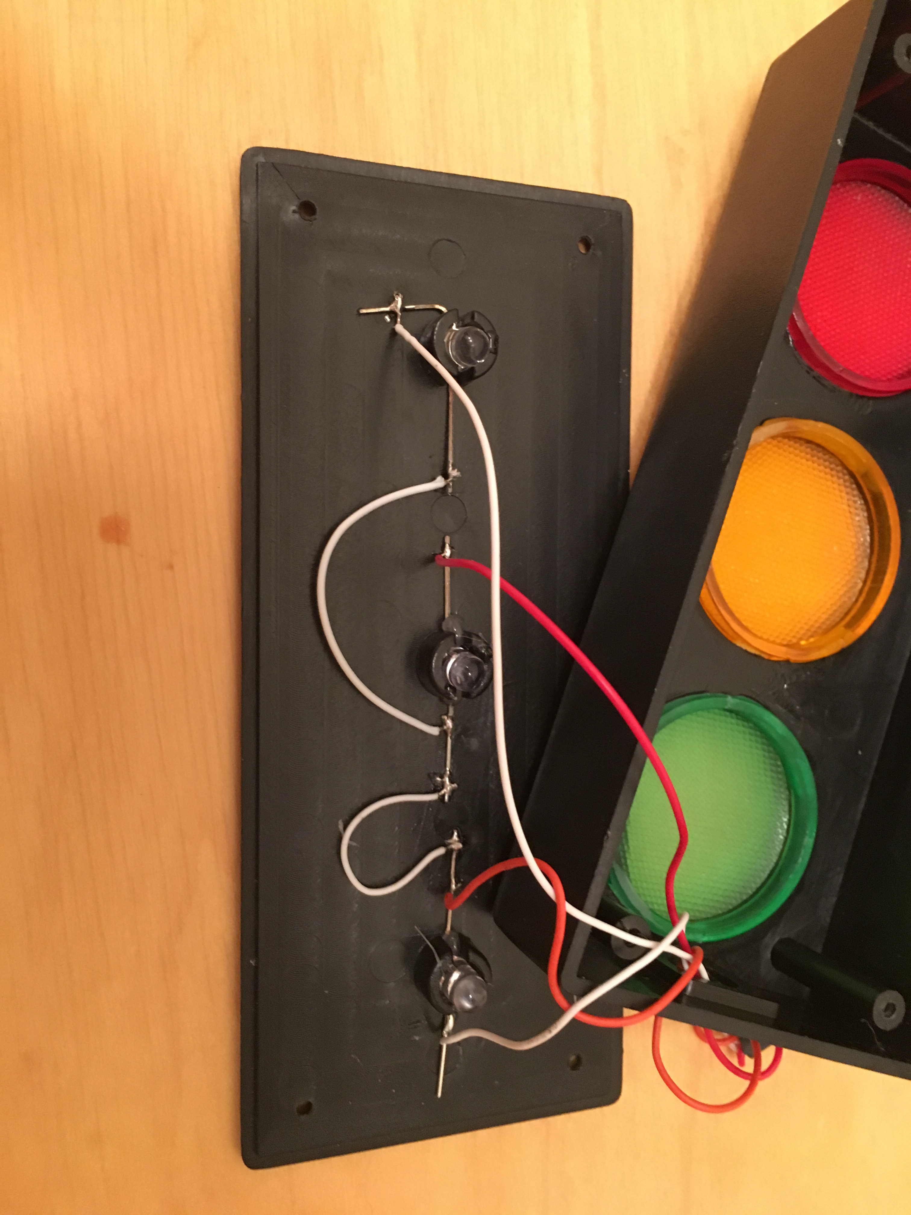 I then opened the back of the traffic light itself (another four screws). The original connections look like this: